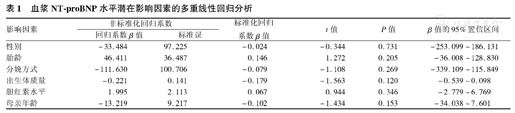 血浆NT-proBNP水平潜在影响因素的多重线性回归分析