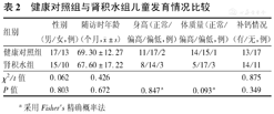 肾积水组和健康对照组儿童生长发育情况参数比较,见表2。