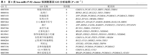 第1类hsa-miR-17-92 cluster预测靶基因GO分析结果(P<10-7)