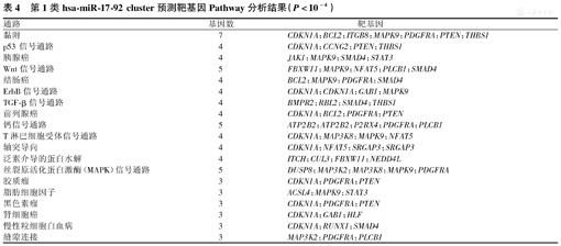 第4类hsa-miR-17-92 cluster预测靶基因Pathway分析结果(P<10-4)