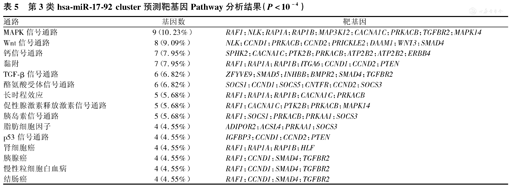 第1类hsa-miR-17-92 cluster预测靶基因Pathway分析结果(P<10-4)