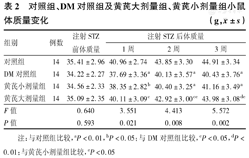 | 组别 | 例数 | 注射STZ前体质量 | 注射STZ后体质量 | ||