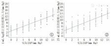健康儿童经膀胱IAP值为0.40~6.69 mm Hg,伴随IAP的增加,膀胱压也逐步上升,无论1 mL/kg或25 mL 9 g/L盐水灌注量,膀胱压与实际IAP均呈直线正相关,见图1、图2,回归方程分别为Y=2.869+0.706X(r=0.835,R2=0.698)和Y=3.734+0.735X(r=0.796,R2=0.633),2组回归方程斜率比较差异无统计学意义(P=0.275)。其中16例(76.2%)经膀胱间接IAP较直接IAP高,5例(23.8%)低。
