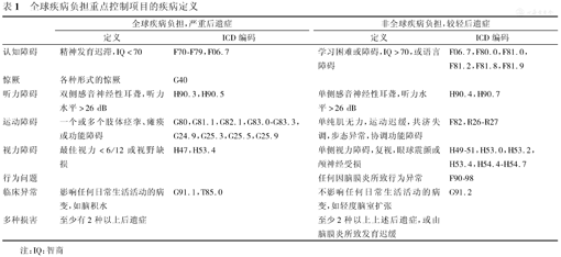 全球疾病负担重点控制项目的疾病定义