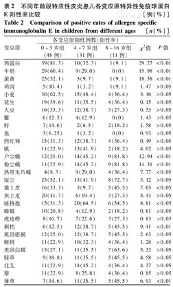 Comparison of positive rates of allergen specific immunoglobulin E in children from different ages[n(%)]