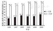1993年至2009年我国6~17岁儿童青少年腹型肥胖检出率(%)