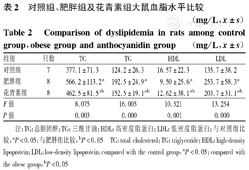 Comparison of dyslipidemia in rats among control group,obese group and anthocyanidin group(mg/L,