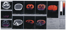 Brain positron emission tomography and computer tomography of the patient No.10,showing the radioactive ratio of bilateral cerebellar hemispheres to bilateral temporal lobes was about 0.61