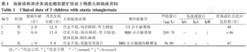 临床诊断共济失调毛细血管扩张症3例患儿的临床资料