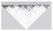 注:方框中数值为实际连锁不平衡D'值放大100倍后的结果,颜色越深,连锁程度越强 The values shown in the box are the actual linkage disequilibrium D' values magnified 100 times,the deeper the color,the stronger the degree of linkage