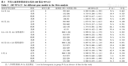 瘦素受体基因(rs1137101)多态性与儿童肥胖遗传易感性无关联。然而,发生等位基因突变时欧洲人群肥胖遗传易感风险较亚洲、美洲稍高,提示不同种族的遗传背景差异可能影响上述变化。