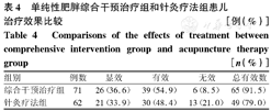 | 针灸疗法组 | 62 | 21(33.9) | 30(48.4) | 13(21.0) | 49(79.0) |