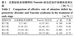 Comparison of effective rate of attention deficit hyperactivity disorder and Tourette syndrome in the treatment of each stage[n(%)]