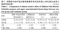 对照组与治疗组过敏性紫癜并急性或反复上消化道出血患儿临床疗效比较(
