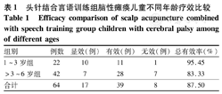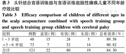 Efficacy comparison of children of different ages in the scalp acupuncture combined with speech training group and speech training group children with cerebral palsy