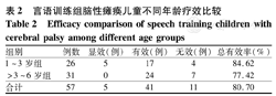 言语训练组脑性瘫痪儿童不同年龄疗效比较
