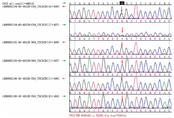 | 8 | S | TSC2 | Exon34 | 错义突变 | c.4418A>G | p.Lys1473Arg | 是 |