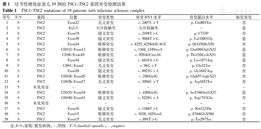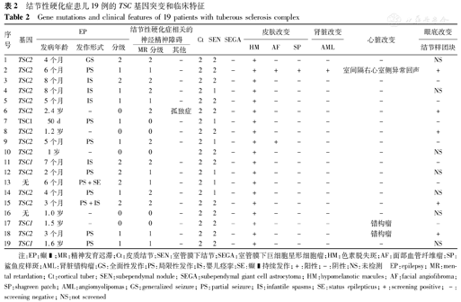 结节性硬化症患儿19例的TSC基因突变和临床特征