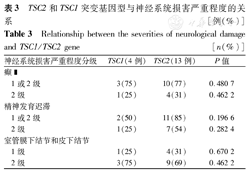 | 神经系统损害严重程度分级 | TSC1(4例) | TSC2(13例) | P值 | |