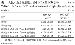 大鼠小肠上皮细胞上清中MDA及SOD水平(