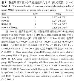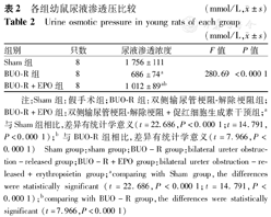 经测定,Sham组幼鼠尿液渗透压最高,BUO-R+EPO组次之,BUO-R组最低,见表2。