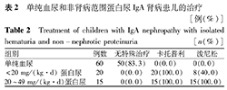 本研究有一些不足,第一,重症患儿少,本研究中,没有IgA肾病并发肾功能不全的患儿,对治疗结果有一定影响;第二,虽然随访结果未发现肾功能不全,但是随访时间大多数没有超过10年,还需要更长时间的随访;第三,本研究为单中心回顾性研究,还需要多中心前瞻性临床研究的支持。