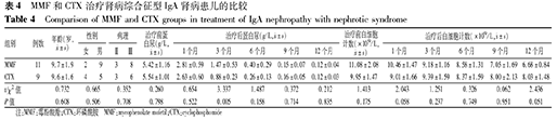 Comparison of MMF and CTX groups in treatment of IgA nephropathy with nephrotic syndrome