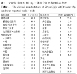 文献报道的20例18p三体综合征患者的临床表现