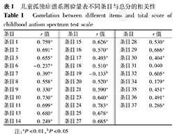 儿童孤独症谱系测验量表不同条目与总分的相关性