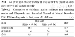 ≥4岁儿童孤独症谱系测验量表筛查结果与《精神障碍诊断与统计手册》诊断结果比较(例)