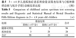 3~<4岁儿童孤独症谱系测验量表筛查结果与《精神障碍诊断与统计手册》诊断结果比较(例)