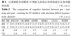 注意缺陷多动障碍15例患儿在线认知训练前后认知功能的比较(%,