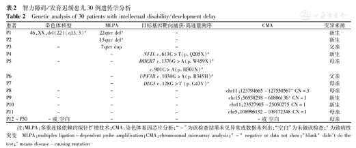 Genetic analysis of 30 patients with intellectual disability/development delay