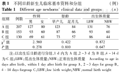 According to age in days after birth, within 1 day after birth for group A, 2-3 days for group B, 4-14 days forgroup C;LBW:low birth weight;NBW:normal birth weight