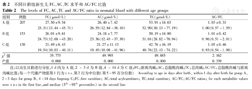 The characteristics of alteration in concentrations of neonatal blood TC,AC and FC with different age