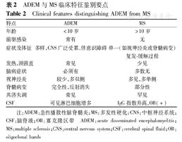 注:ADEM:急性播散性脑脊髓炎;MS:多发性硬化;MRI:磁共振成像 ADEM:acute disseminated encephalomyelitis;MS:multiple sclerosis;MRI:magnetic resonance imaging