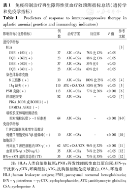免疫抑制治疗再生障碍性贫血疗效预测指标总结(遗传学和免疫学指标)