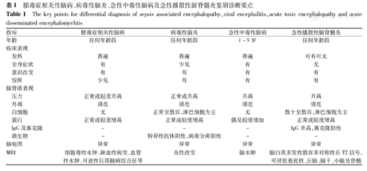 脓毒症相关性脑病、病毒性脑炎、急性中毒性脑病及急性播散性脑脊髓炎鉴别诊断要点
