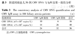 The consistency analysis of CMV DNA quantification and CMV IgM assay in 184 biliary atresia patients(n)