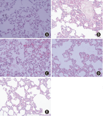Histological changes of lung tissue in rats among different groups(HE staining, ×200)
