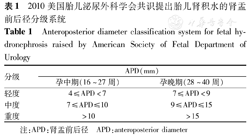 2010美国胎儿泌尿外科学会共识提出胎儿肾积水的肾盂前后径分级系统