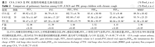CVA、UACS及PIC组慢性咳嗽患儿肺功能比较 (%Pred,