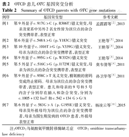 注:OTCD:鸟氨酸氨甲酰转移酶缺乏症