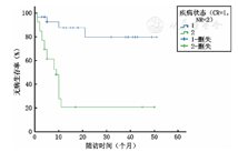 ALL CR组死亡3例,其中2例复发,1例肺部并发症。NR组死亡8例,6例复发,2例肺部并发症。AML CR组13例均存活。NR组死亡8例,7例复发,1例重度GVHD。