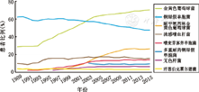 CF患者具有典型的病原学特征,且随年龄变化,病原谱也不同[15]。多数婴儿初始为流感嗜血杆菌和/或金黄色葡萄球菌感染,若无特殊的干预措施,铜绿假单胞菌可最终成为呼吸道感染的主要病原。不同年龄阶段的呼吸道病原分布不同(图1)[16]。2016年美国CF基金会也对不同年份CF的病原变化趋势进行了分析,发现近10年来,金黄色葡萄球菌的感染率明显高于铜绿假单胞菌(图2)[16]。在中国CF患者中,最常见的病原为铜绿假单胞菌,其次为金黄色葡萄球菌、肺炎克雷伯菌等[6]。