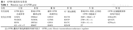 注:CFTR:囊性纤维化跨膜传导调节因子CFTR:cystic fibrosis transmembraneconductance regulator