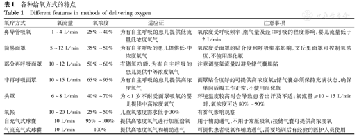 总之,儿科急危重患者经常需要氧疗。氧疗技术的选择取决于患者的临床状态、所需的氧浓度及对氧疗技术的耐受程度。各种氧疗给氧方法的特点及使用注意事项简要情况见表1。