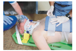 出血是创伤的突出表现,现场及时有效止血是救治的关键步骤。外部出血主要有压迫止血和止血带止血。压迫止血可采用直接压迫出血部位止血,也可采用压住出血的血管上端(近心端)以压闭血管阻断血流止血。止血带止血时间越短越好,一般不超过4 h,每隔30~60 min放松2~3 min,内部出血通过止血不能缓解的需急诊手术干预。骨盆骨折、开放性或闭合性长骨骨折也可引起严重出血,需进行适当的固定,以防止二次损伤。