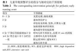 儿童早期预警评分的得分与相对应的干预原则