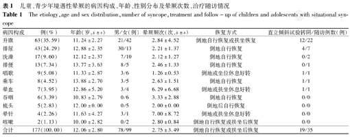The etiology,age and sex distribution,number of syncope,treatment and follow-up of children and adolescents with situational syncope
